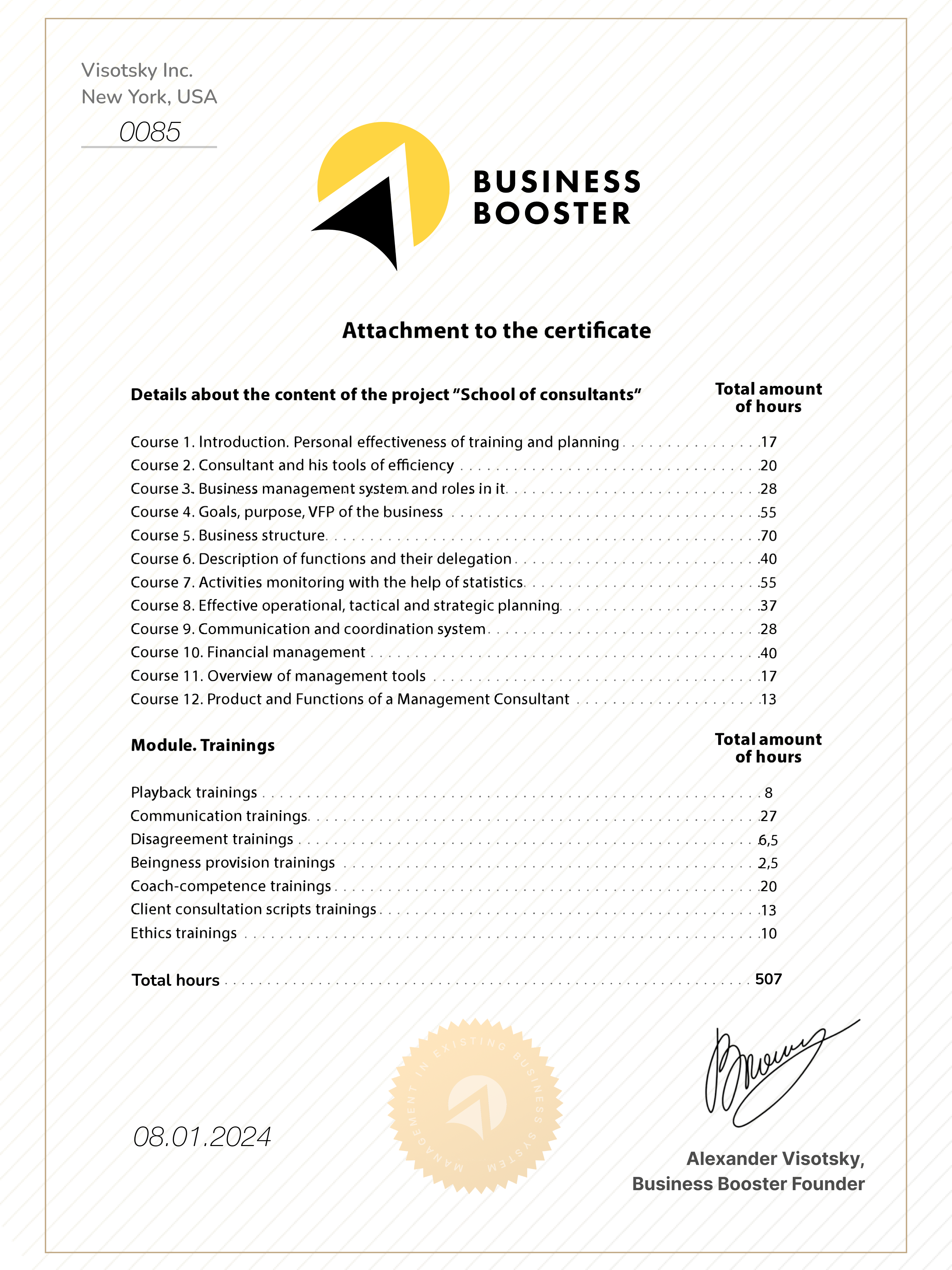 В состав курса включены практические задания, которые научат направлять и контролировать общение, укрепят уверенность в способности правильно взаимодействовать с людьми в разных их проявлениях. Также в состав курса включены тренировочные упражнения, позволяющие урегулировать этические конфликты.
